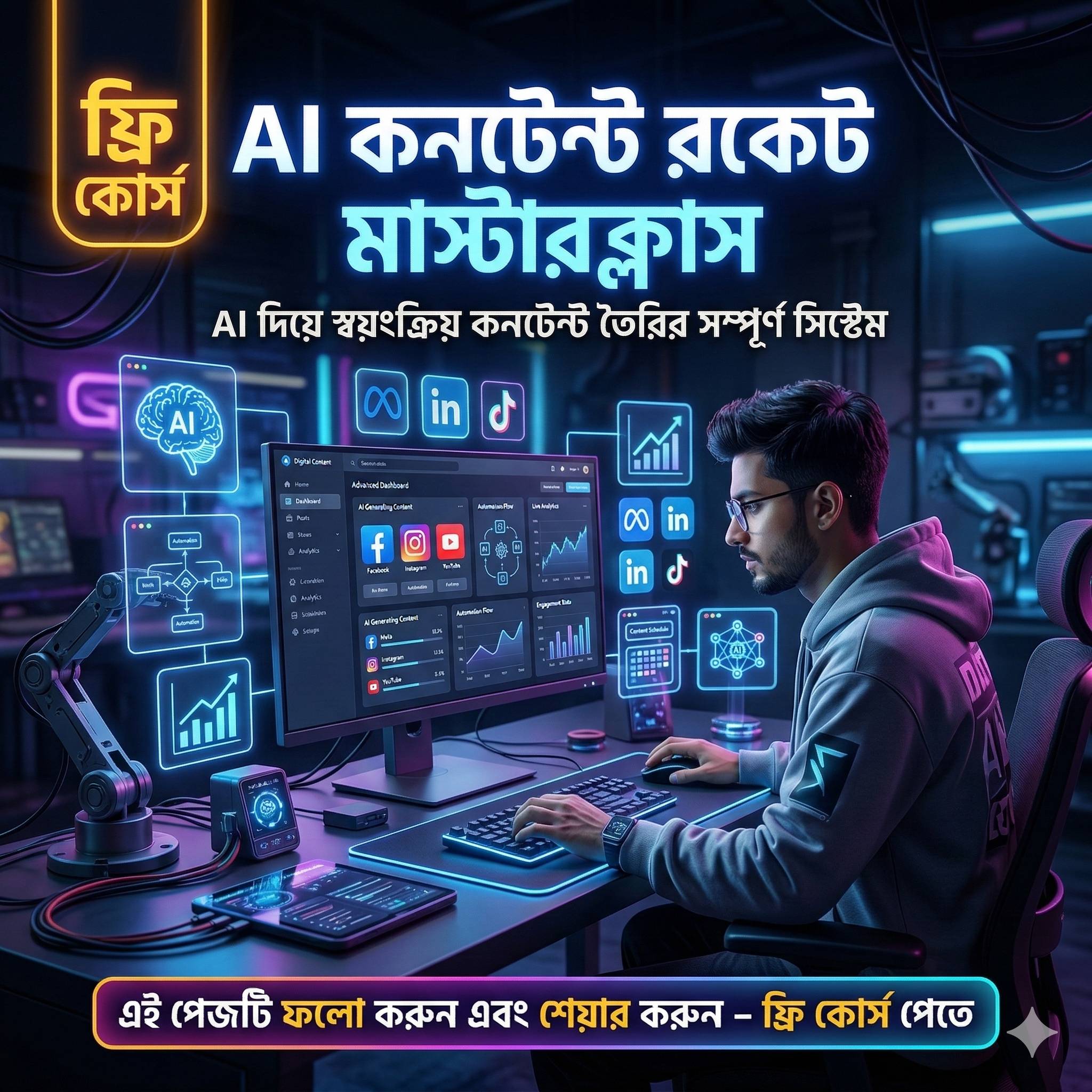 👉 Follow & Share করে এখনই কোর্সটি সংগ্রহ করুন এবং AI দিয়ে Automated Content System তৈরি করা শিখুন।