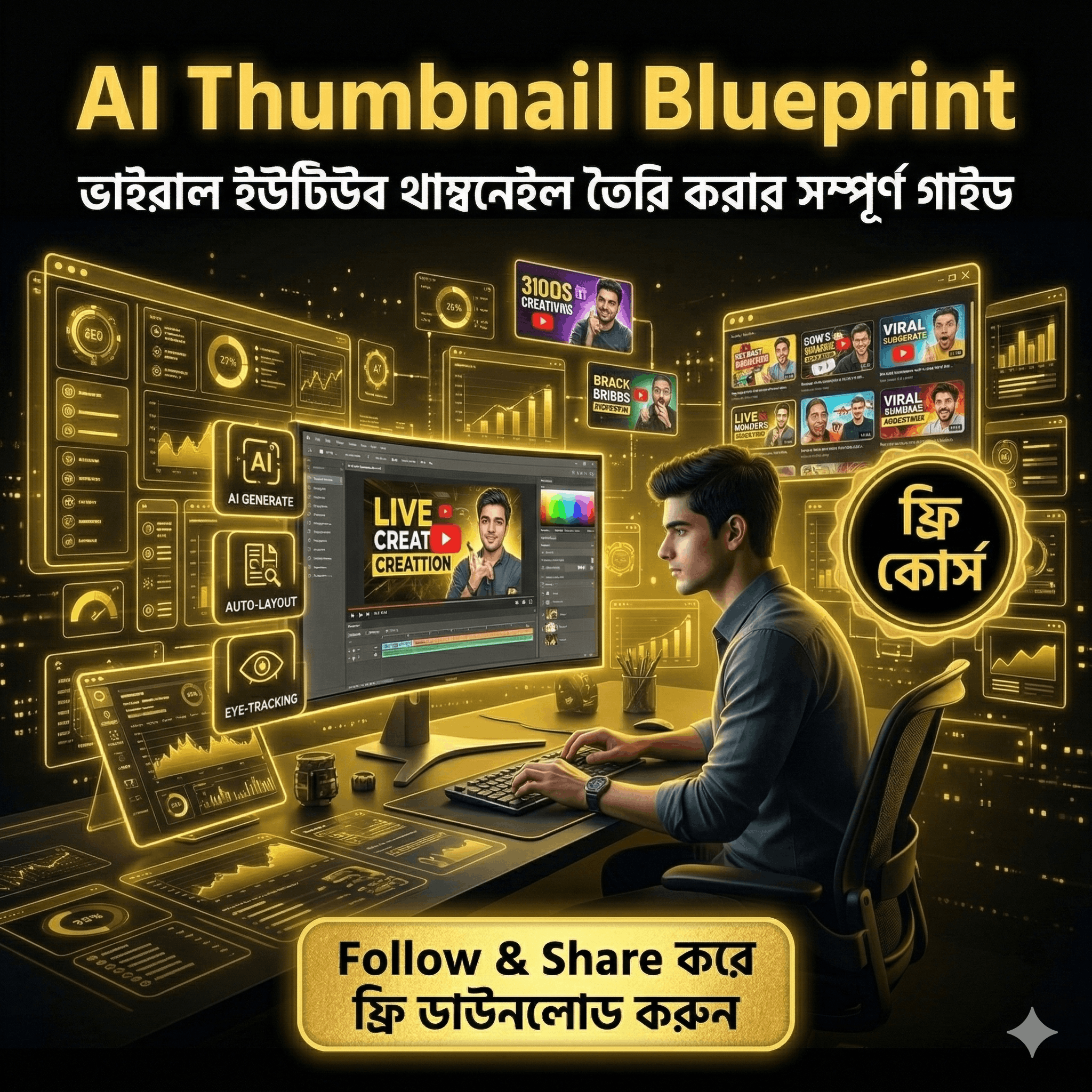 👉 Follow & Share করে এখনই কোর্সটি সংগ্রহ করুন এবং AI দিয়ে প্রফেশনাল থাম্বনেইল তৈরি করা শুরু করুন।