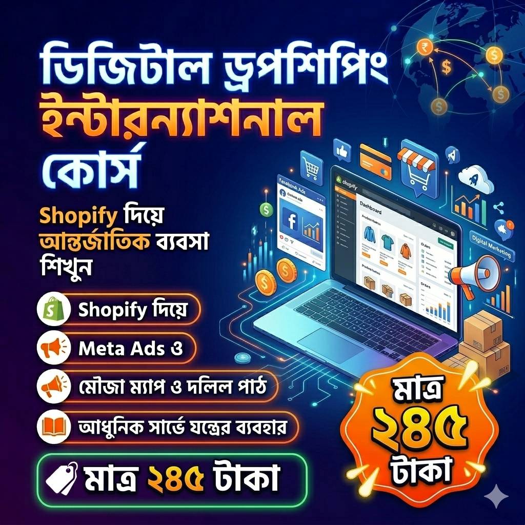 Digital Dropshipping International Bangla Course হলো একটি সম্পূর্ণ প্র্যাক্টিক্যাল কোর্স যেখানে দেখানো হয়েছে কিভাবে ডিজিটাল পণ্য ব্যবহার করে আন্তর্জাতিক মার্কেটে dropshipping business শুরু করা যায়।