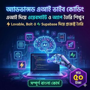 Advanced AI Vibe Coding – AI দিয়ে অ্যাপ, ওয়েবসাইট ও ই-কমার্স তৈরি (সম্পূর্ণ বাংলা কোর্স)